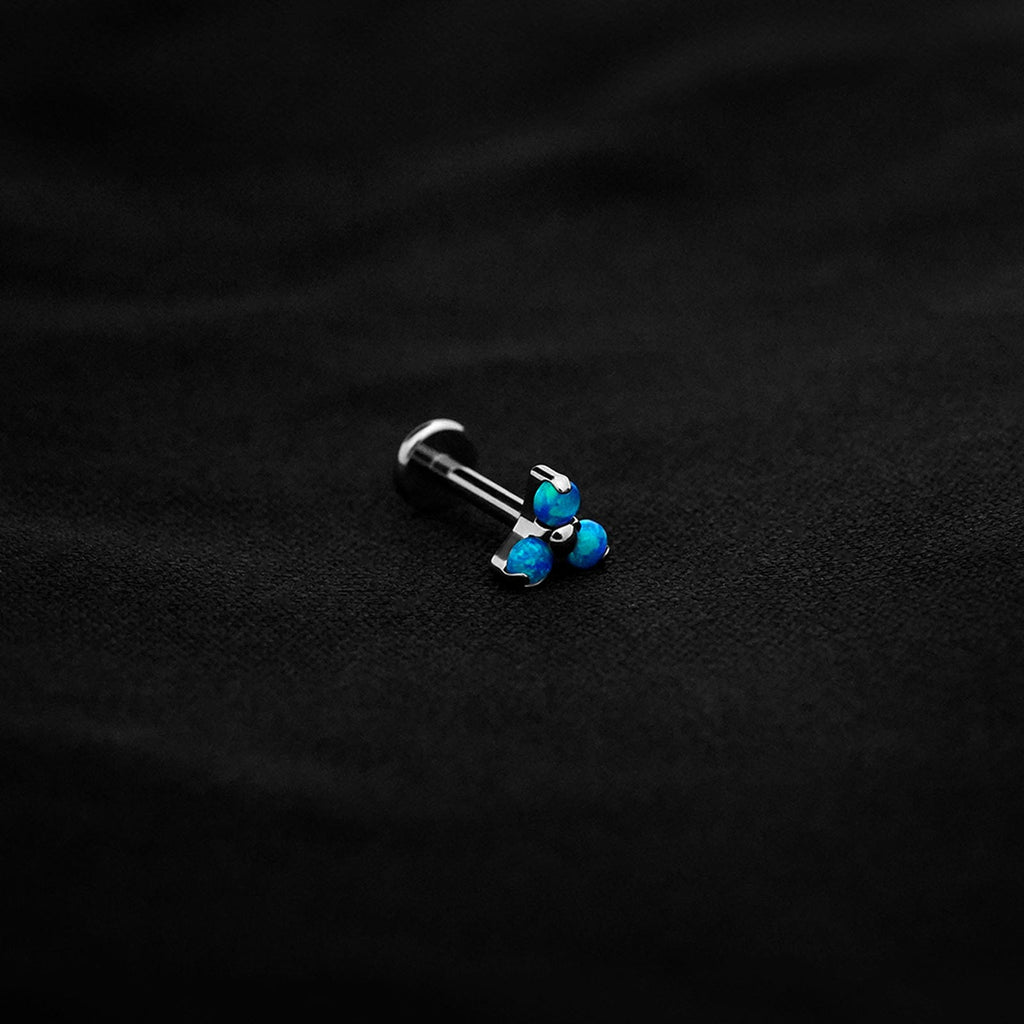 ASTM F136 Implant Grade Titanium Trinity Blue Opal Flatback Labret Stud