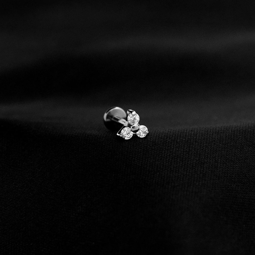 ASTM F136 Implant Grade Titanium Triple Cluster CZ Flatback Labret Stud