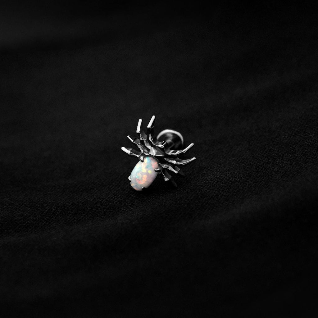 ASTM F136 Implant Grade Titanium White Opal Spider Flatback Labret Stud