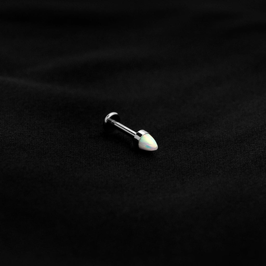 ASTM F136 Implant Grade Titanium White Opal Spike Flatback Labret Stud