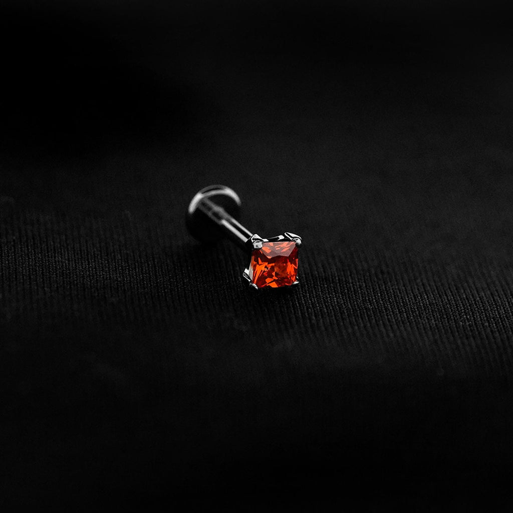 ASTM F136 Implant Grade Titanium Square Red Flatback Labret Stud