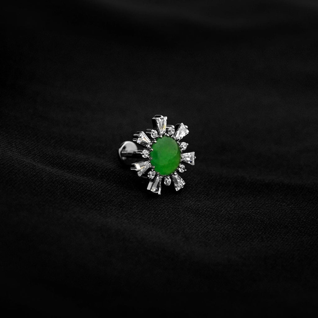 ASTM F136 Implant Grade Titanium Sunflower EM CZ Flatback Labret Stud