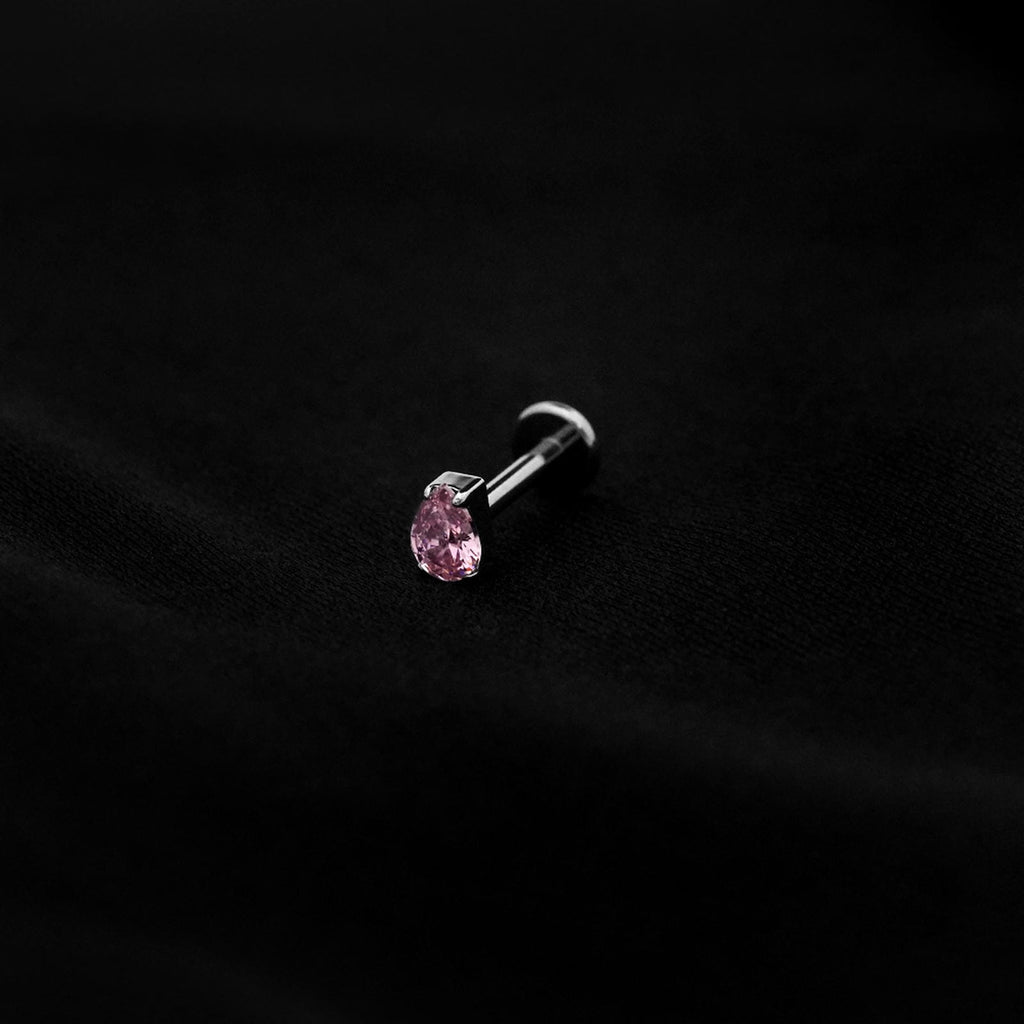 ASTM F136 Implant Grade Titanium Teardrop Pink Flatback Labret Stud