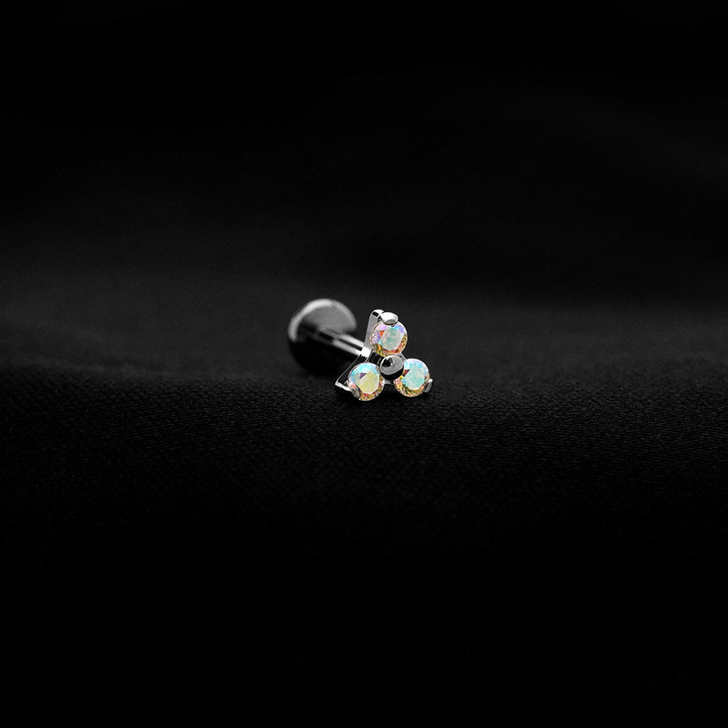 ASTM F136 Implant Grade Titanium Trinity Blue Opal Flatback Labret Stud