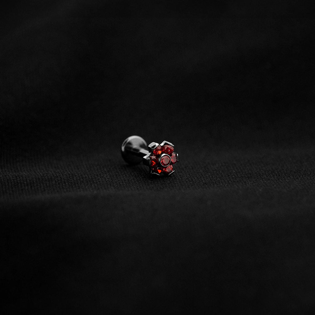 ASTM F136 Implant Grade Titanium Red Flower Flatback Labret Stud