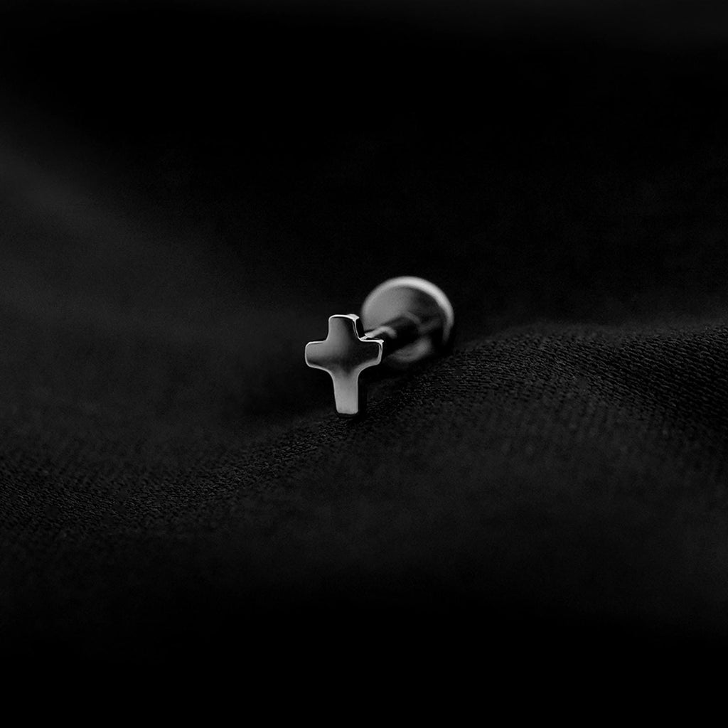 ASTM F136 Implant Grade Titanium Silver Cross Flatback Labret Stud