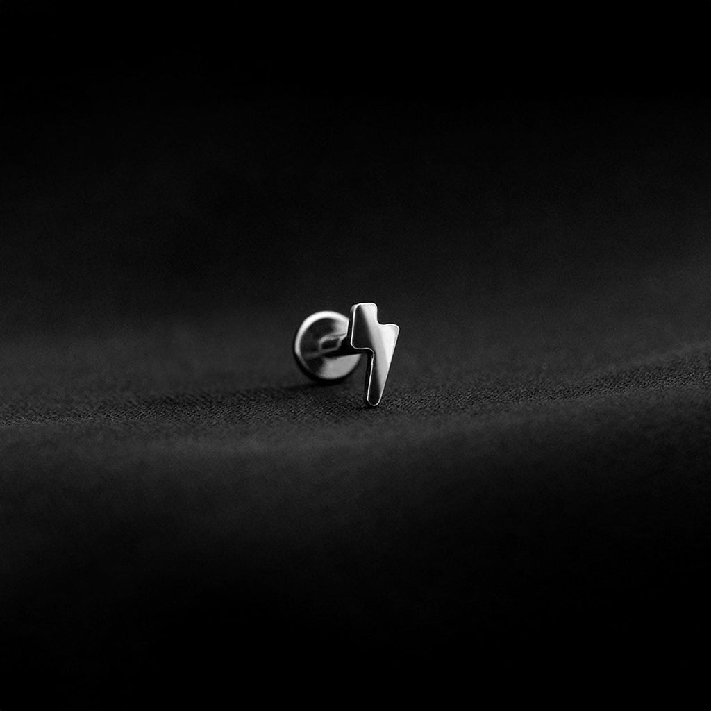 ASTM F136 Implant Grade Titanium Silver Lightning Bolt Flatback Labret Stud