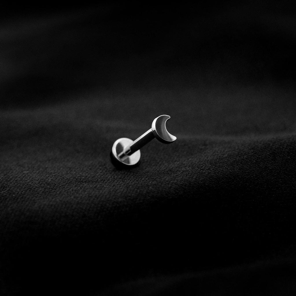 ASTM F136 Implant Grade Titanium Silver Moon Flatback Labret Stud