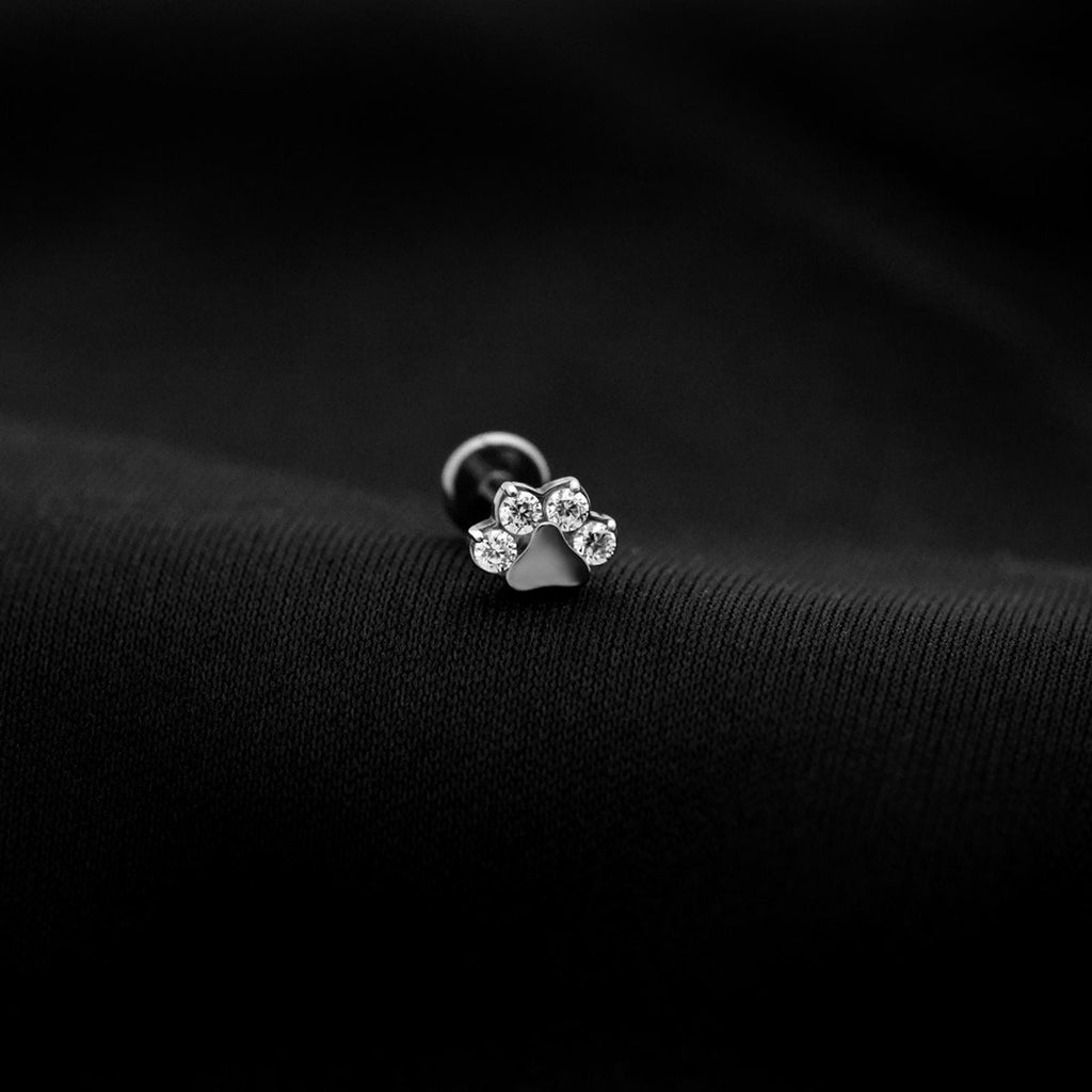 ASTM F136 Implant Grade Titanium Small Paw CZ Flatback Labret Stud