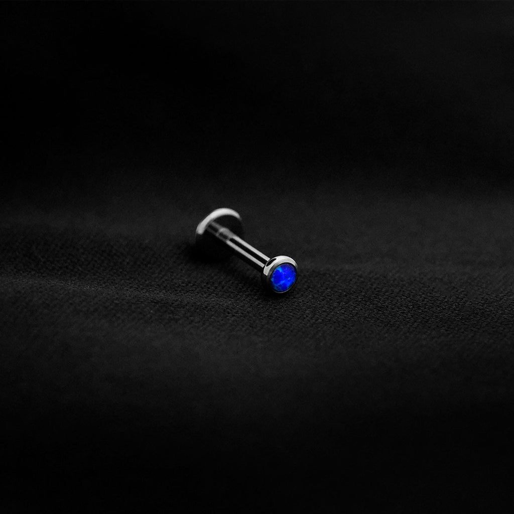 ASTM F136 Implant Grade Titanium Flat Blue Opal Flatback Labret Stud