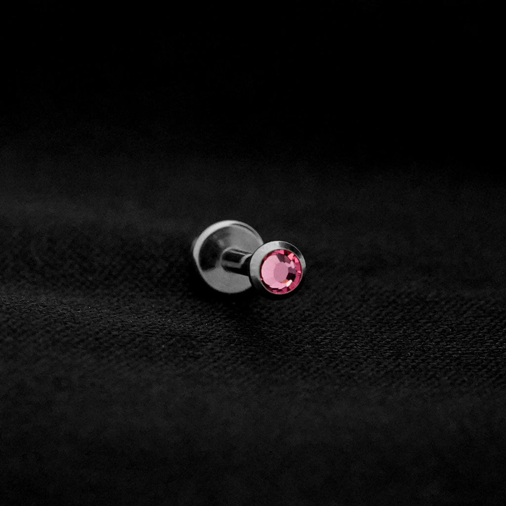 ASTM F136 Implant Grade Titanium Flat Pink CZ Flatback Labret Stud