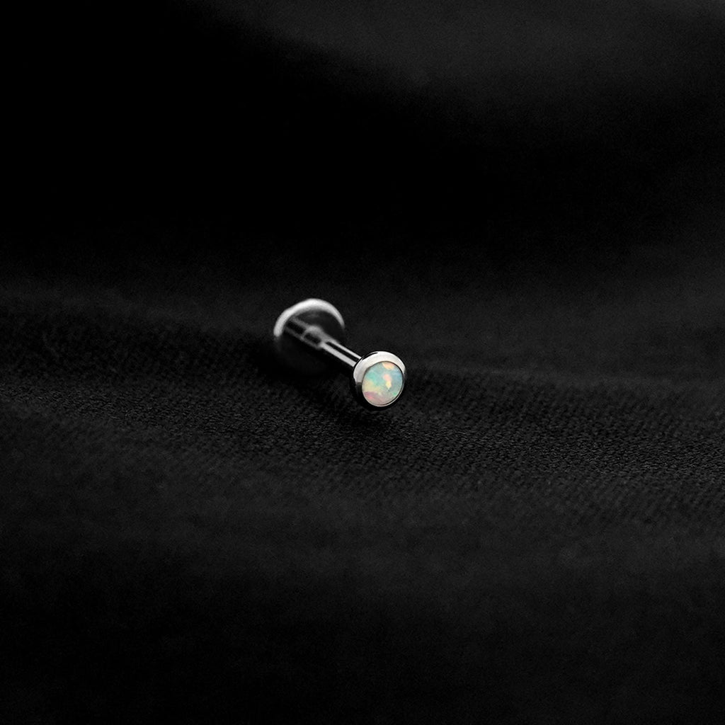 ASTM F136 Implant Grade Titanium Light AQ Opal Flatback Labret Stud