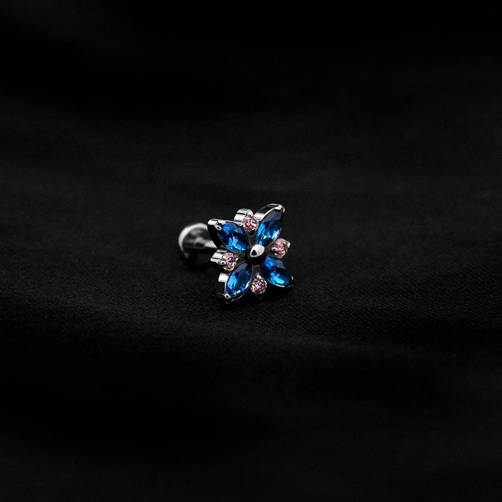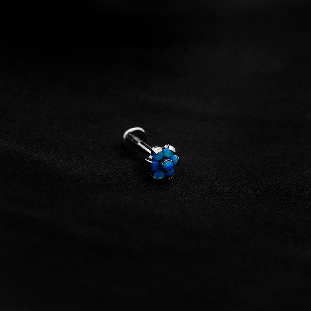ASTM F136 Implant Grade Titanium Flower Blue Opal Flatback Labret Stud