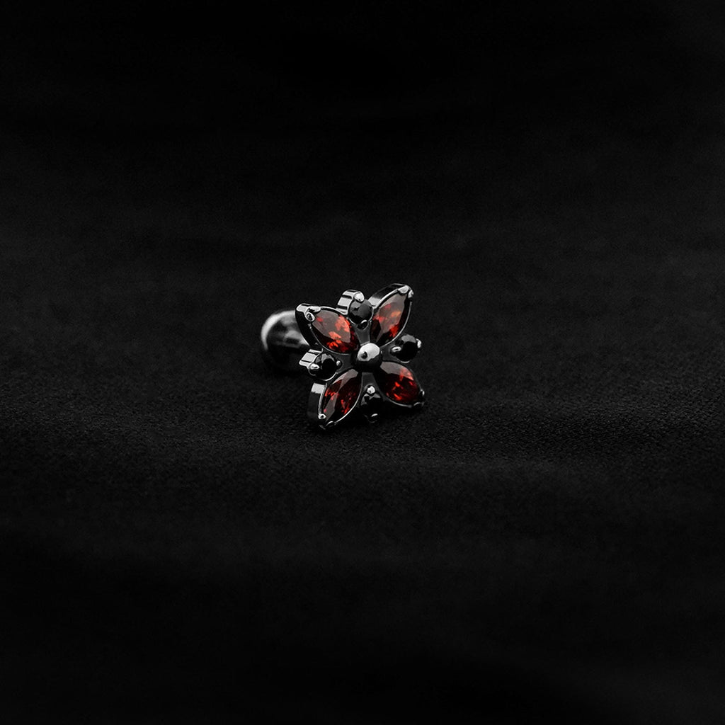 ASTM F136 Implant Grade Titanium Flower Black Red Flatback Labret Stud