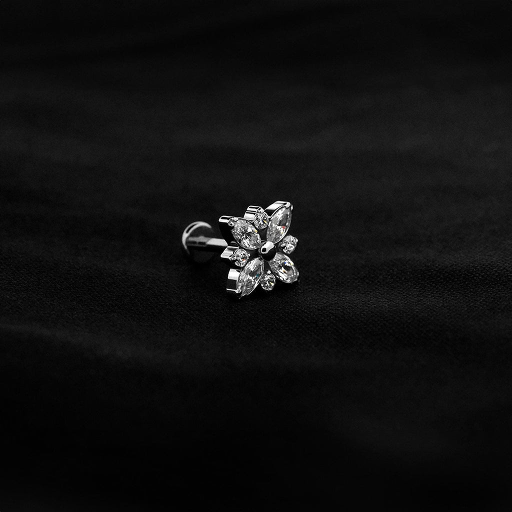 ASTM F136 Implant Grade Titanium Flower CZ 4 Bez CZ Flatback Labret Stud