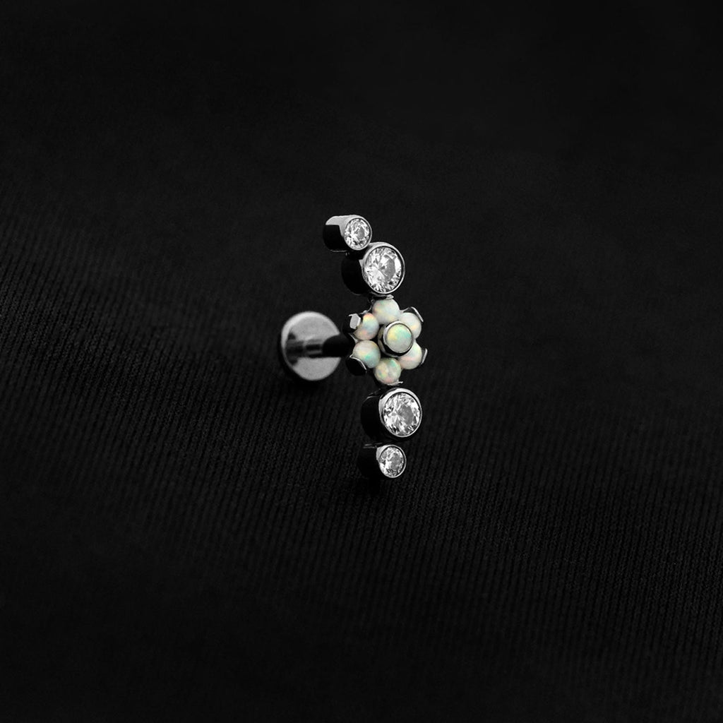 ASTM F136 Implant Grade Titanium Flower White Opal 4 Bez CZ Flatback Labret Stud