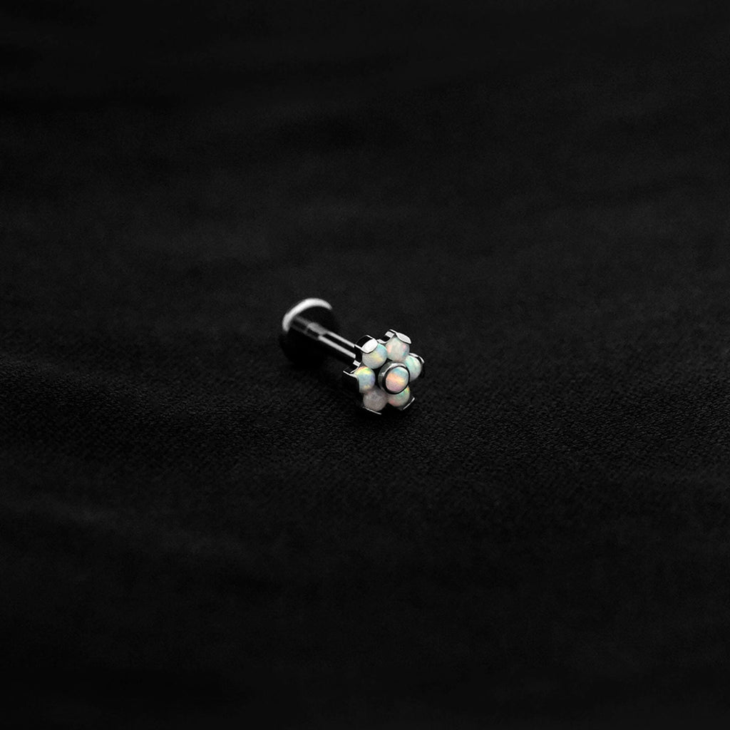 ASTM F136 Implant Grade Titanium Flower White Opal Flatback Labret Stud
