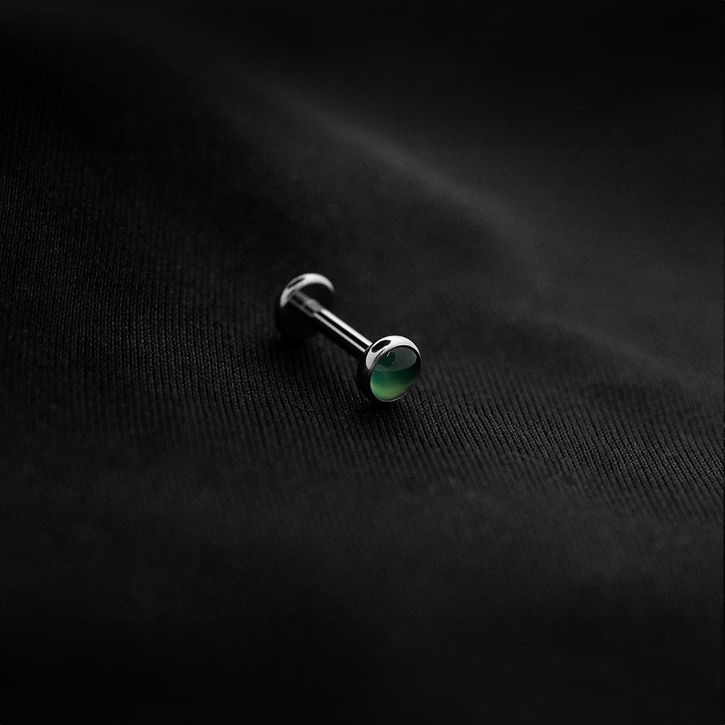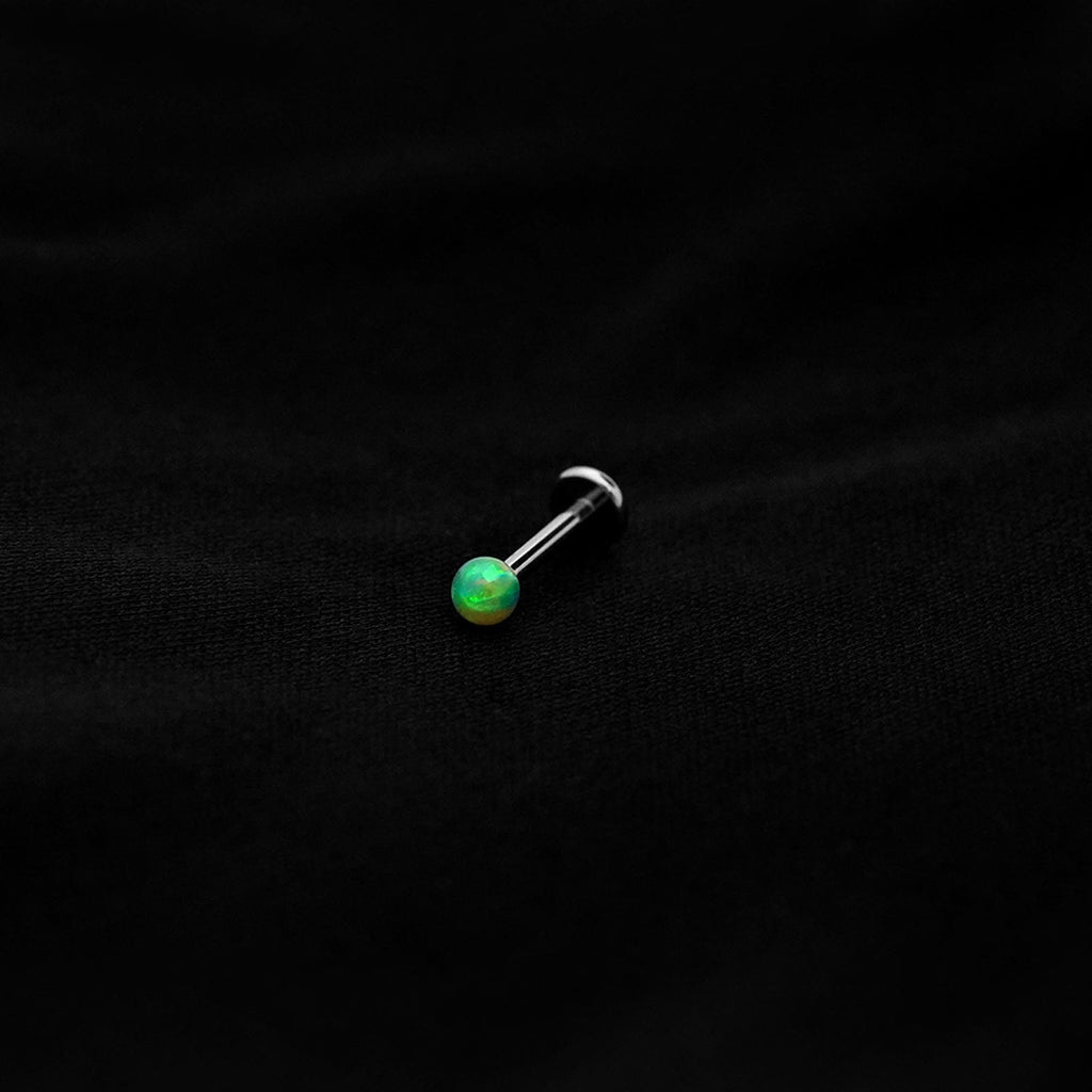 ASTM F136 Implant Grade Titanium Green Opal Flatback Labret Stud