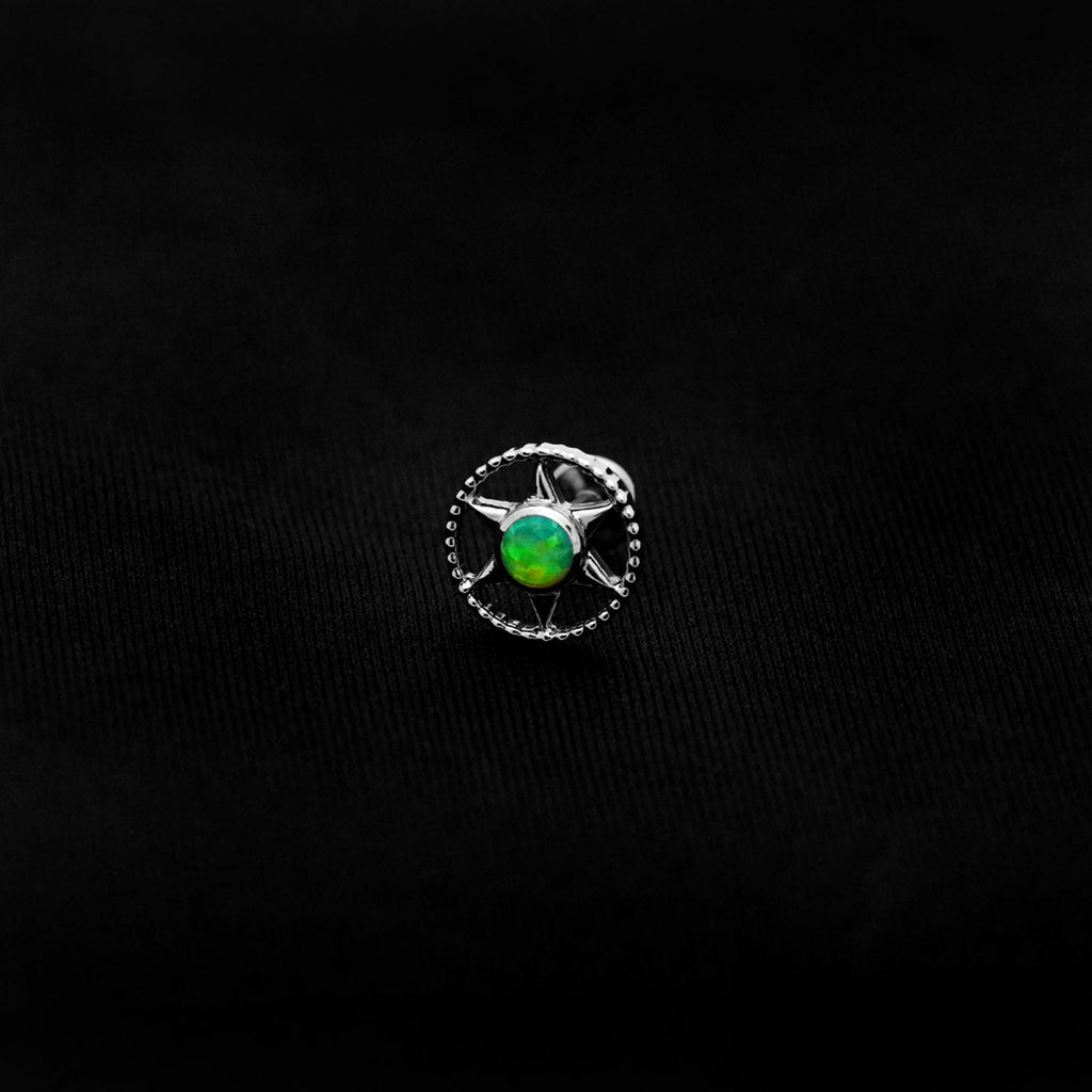 ASTM F136 Implant Grade Titanium Green Opal Orbital Star Cluster Flatback Labret Stud