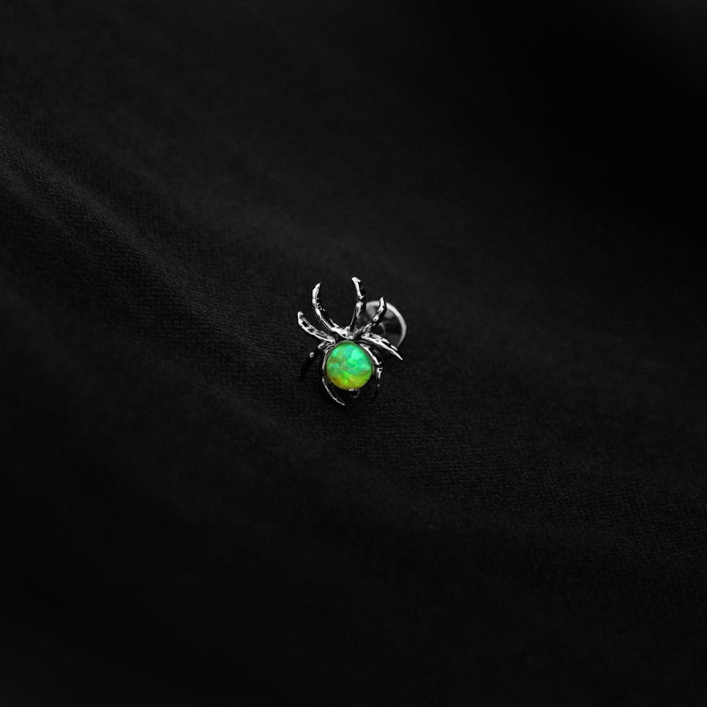 ASTM F136 Implant Grade Titanium Green Opal Spider Flatback Labret Stud