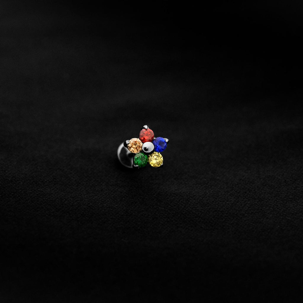 ASTM F136 Implant Grade Titanium Hot Rainbow Flower Flatback Labret Stud