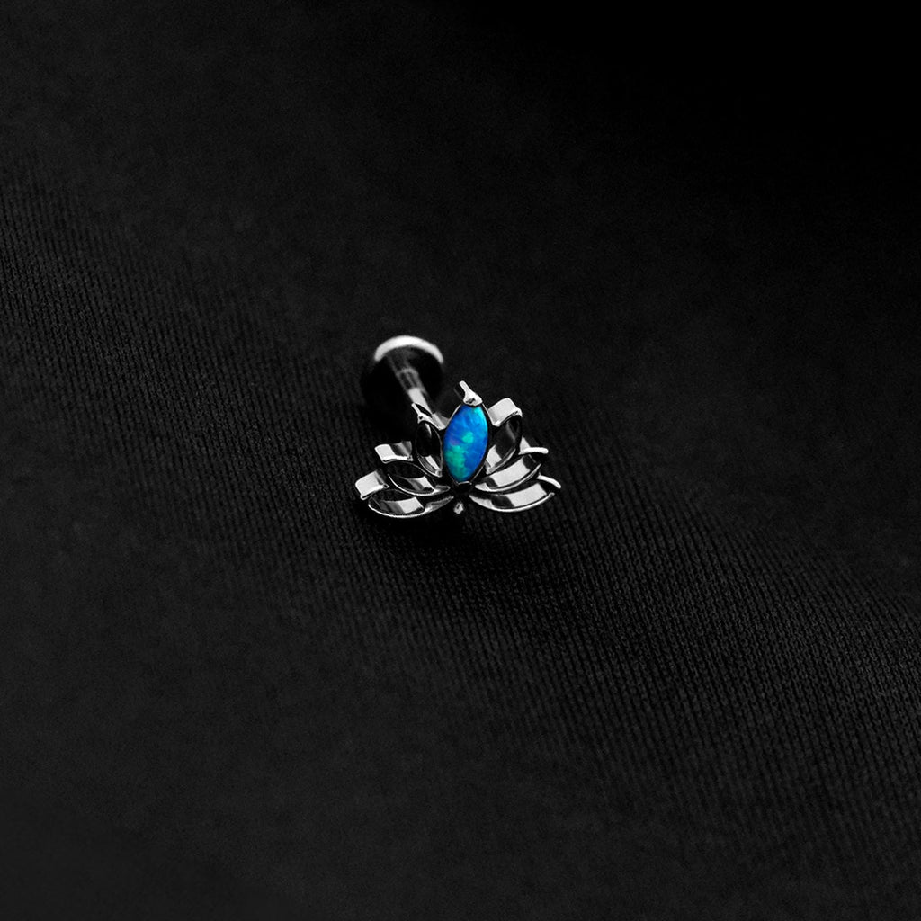 ASTM F136 Implant Grade Titanium Lotus Blue Opal Flatback Labret Stud