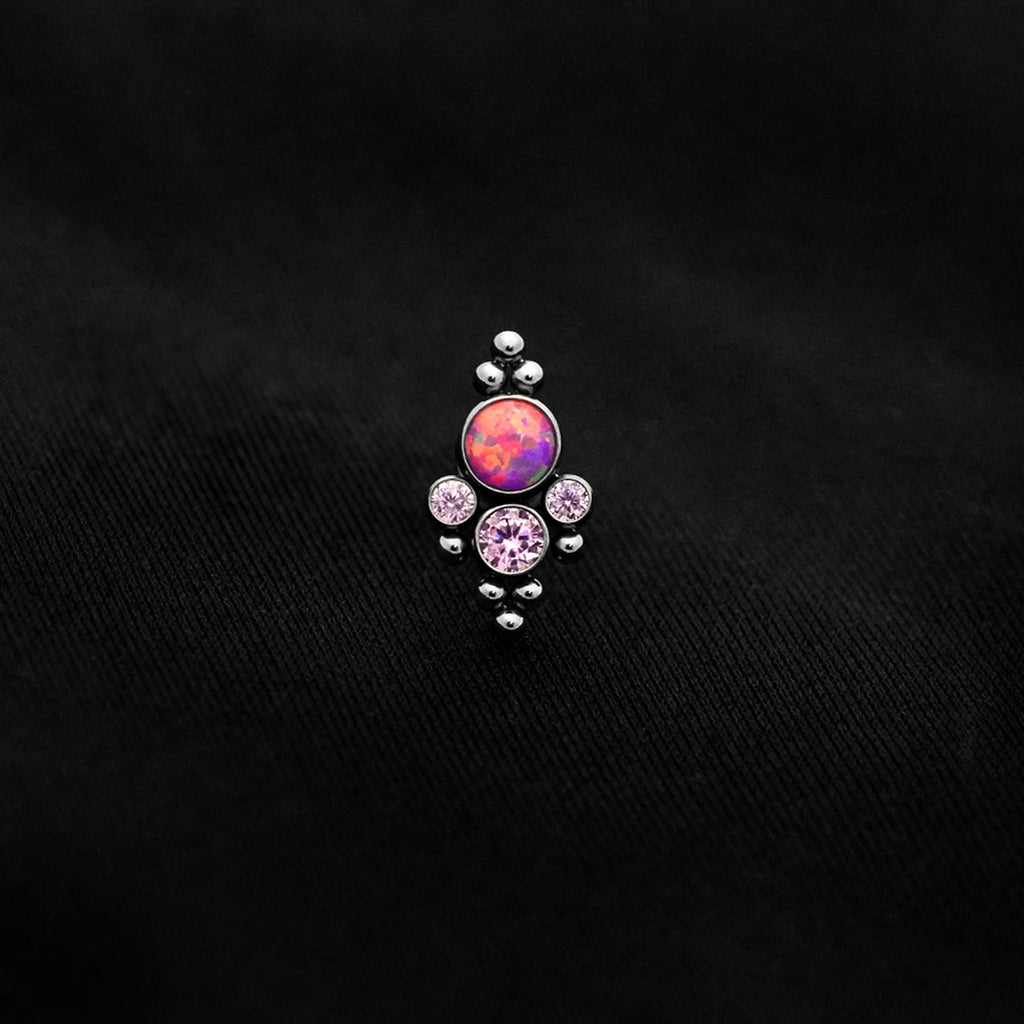 ASTM F136 Implant Grade Titanium 4 Bez Pink Opal Rose Cluster Flatback Labret Stud