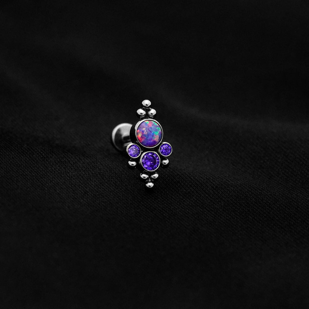 ASTM F136 Implant Grade Titanium 4 Bez Purpal Opal AM Cluster Flatback Labret Stud