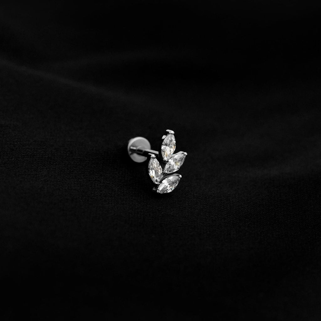 ASTM F136 Implant Grade Titanium 4 Leaf CZ Flatback Labret Stud