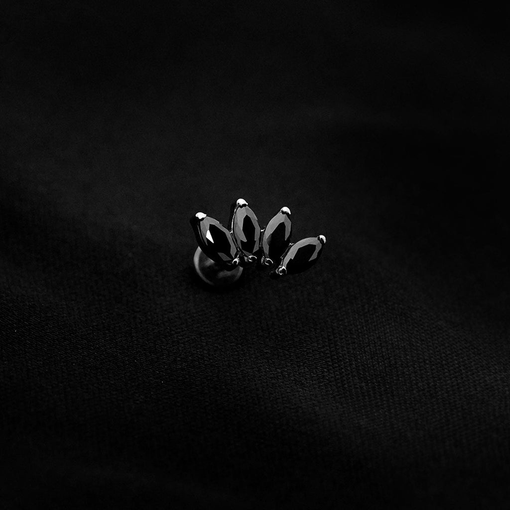 ASTM F136 Implant Grade Titanium 4 Marquise Black Flatback Labret Stud