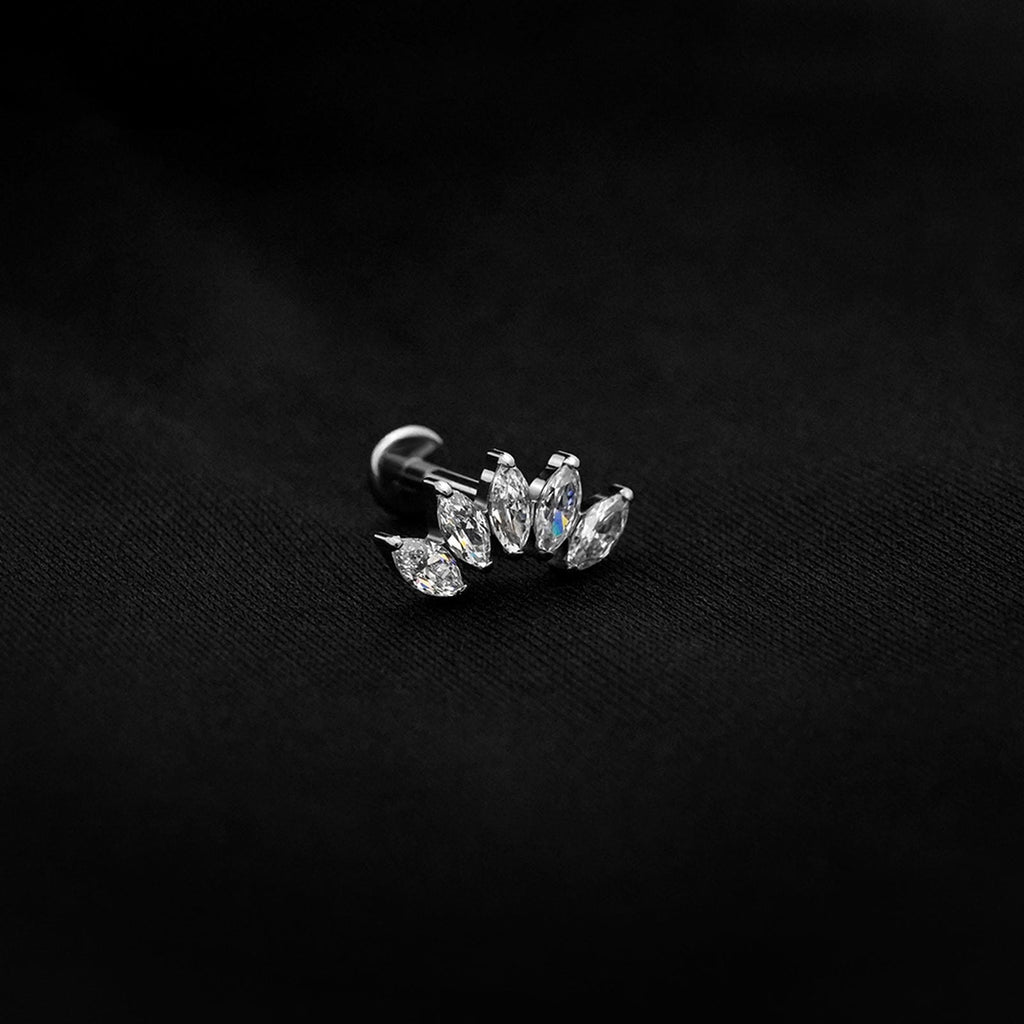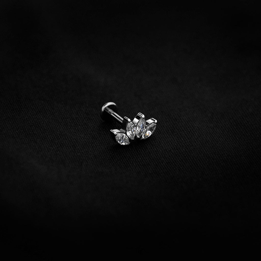 ASTM F136 Implant Grade Titanium 4 Marquise CZ Flatback Labret Stud