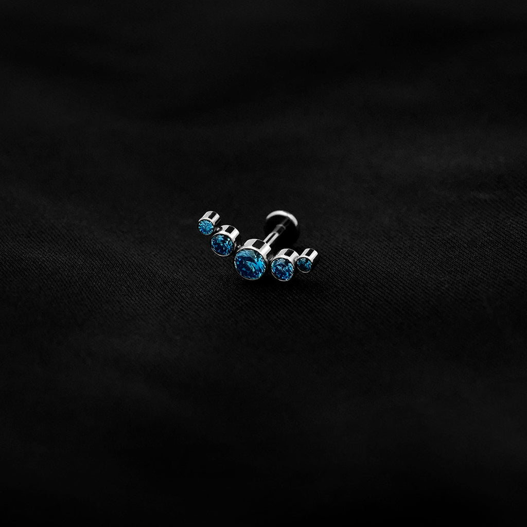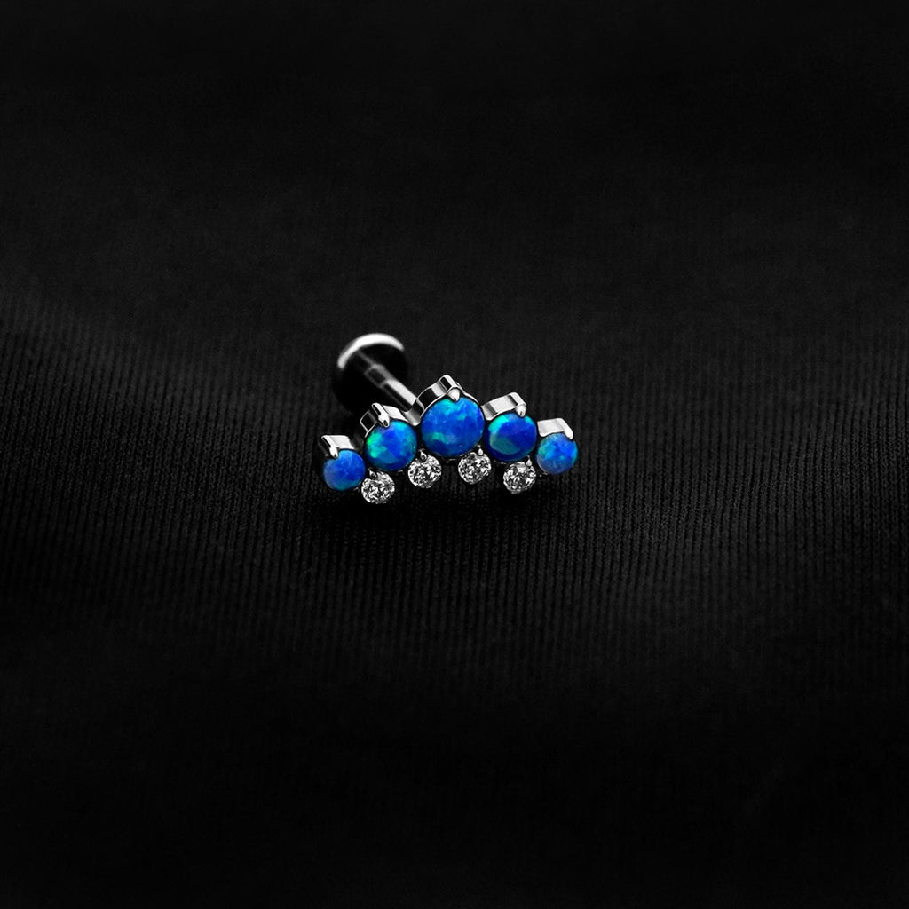ASTM F136 Implant Grade Titanium 5 Bez Blue Opal CZ Flatback Labret Stud