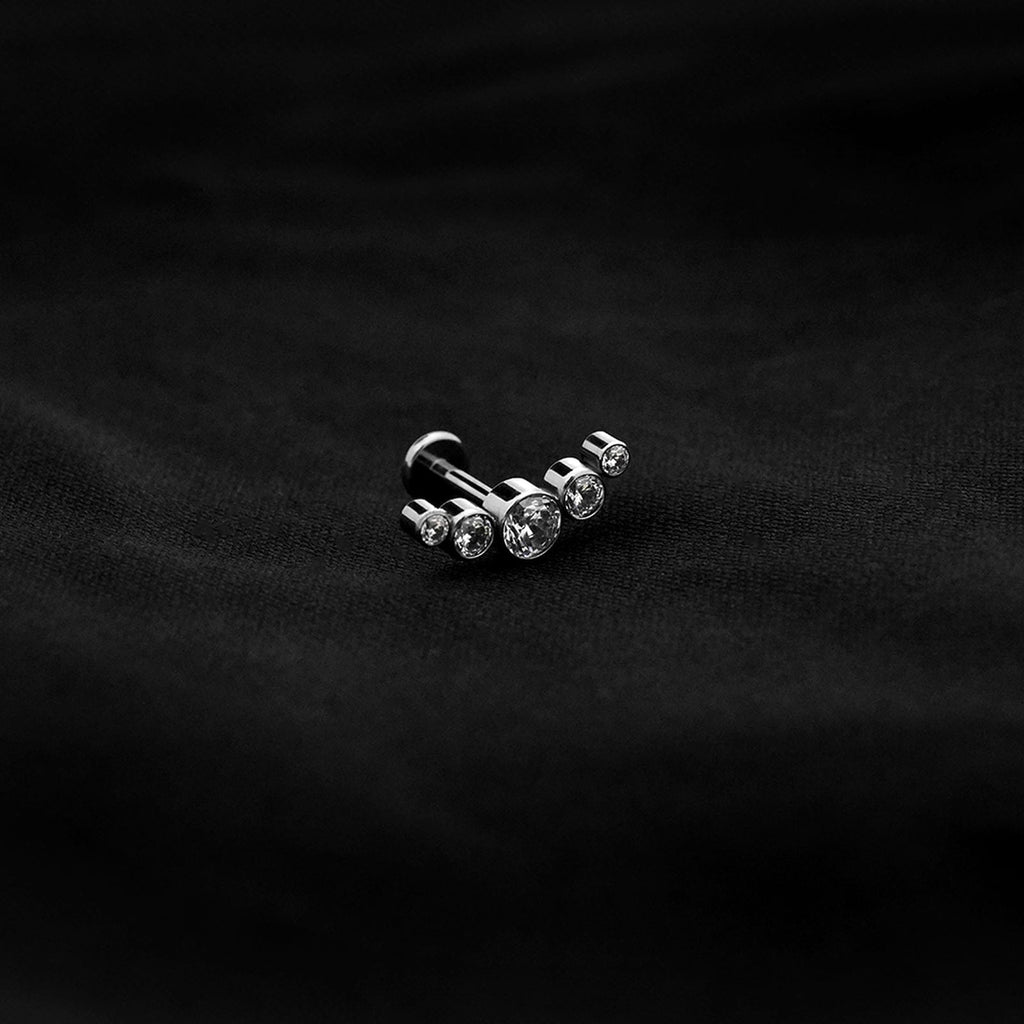 ASTM F136 Implant Grade Titanium 5 Bez Cluster CZ Flatback Labret Stud