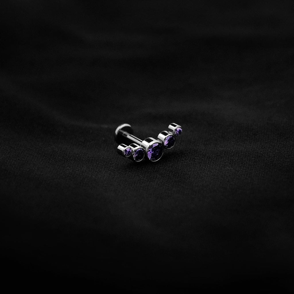 ASTM F136 Implant Grade Titanium 4 CZ Purple Flatback Labret Stud