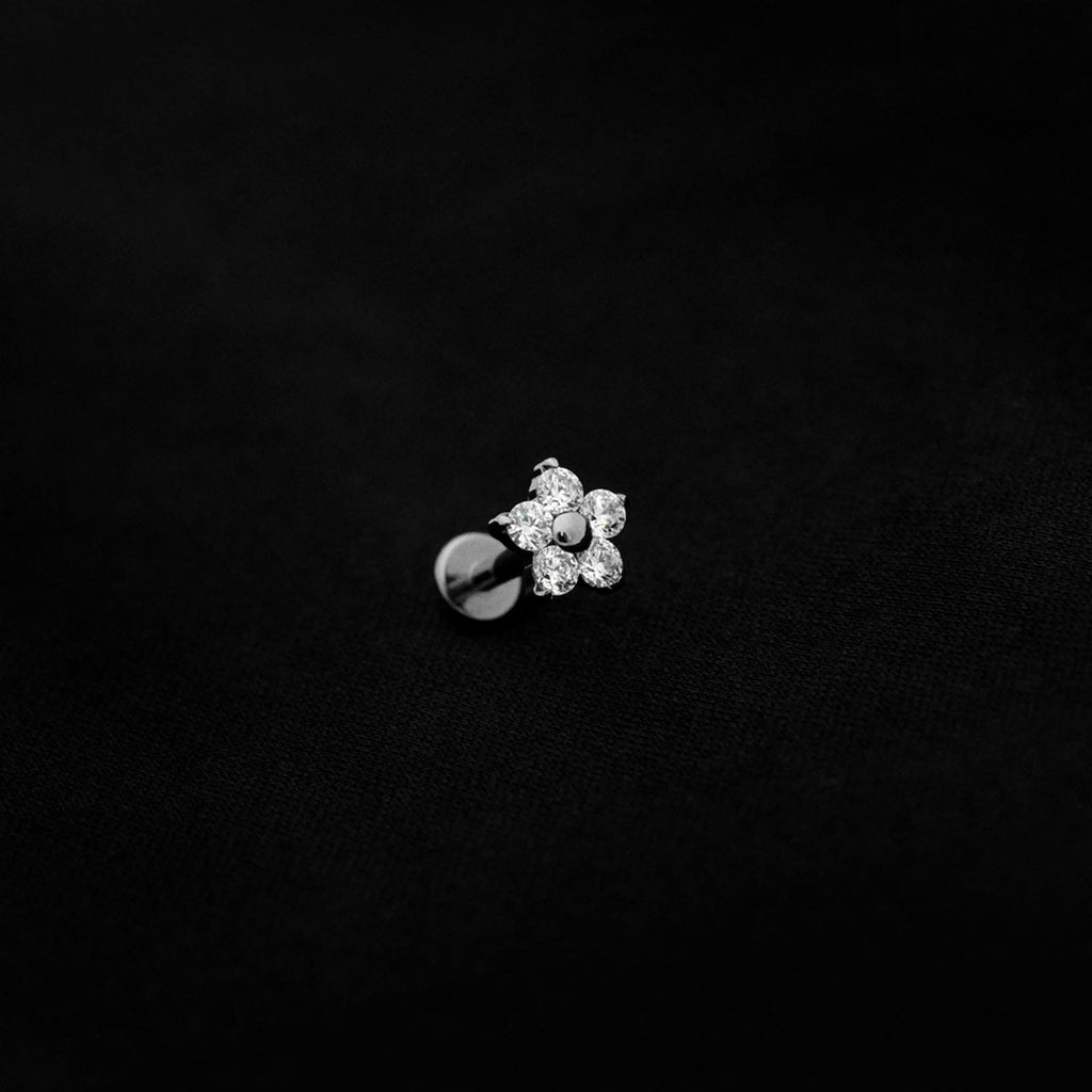 ASTM F136 Implant Grade Titanium 5 CZ Flower Flatback Labret Stud