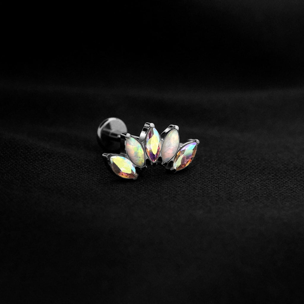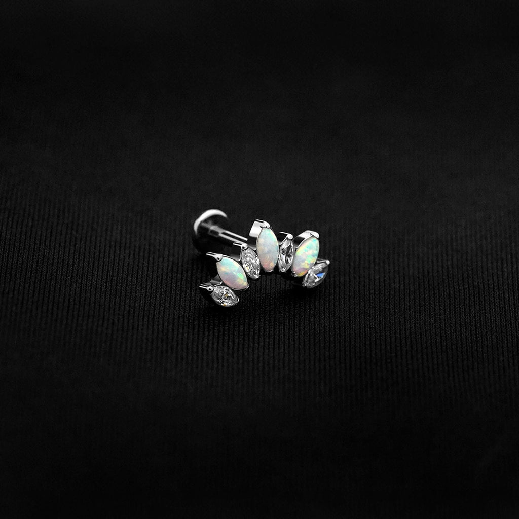 ASTM F136 Implant Grade Titanium 5 Marquise AB White Opal Flatback Labret Stud