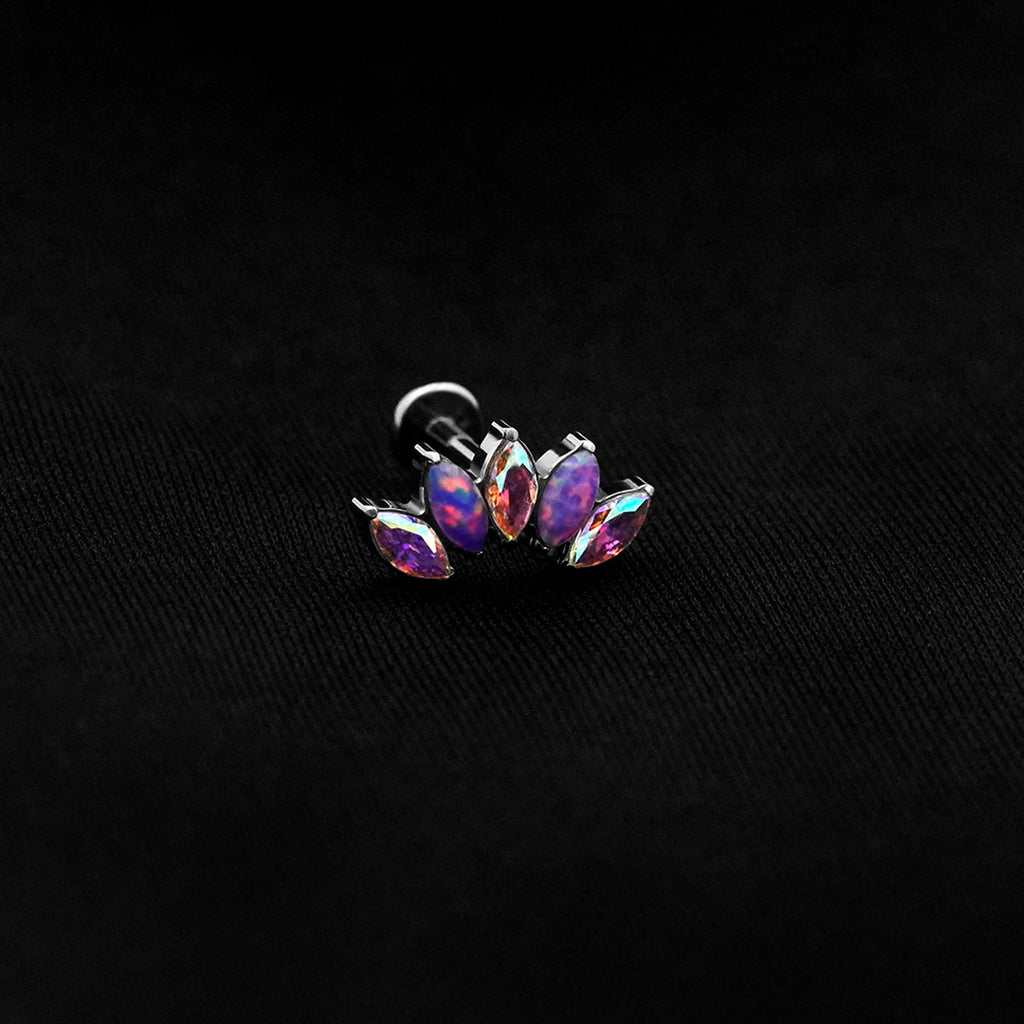 ASTM F136 Implant Grade Titanium 5 Marquise Purple Opal AB Flatback Labret Stud