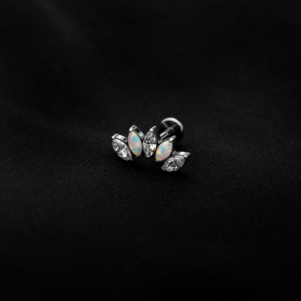 ASTM F136 Implant Grade Titanium 5 Marquise White Opal CZ Flatback Labret Stud
