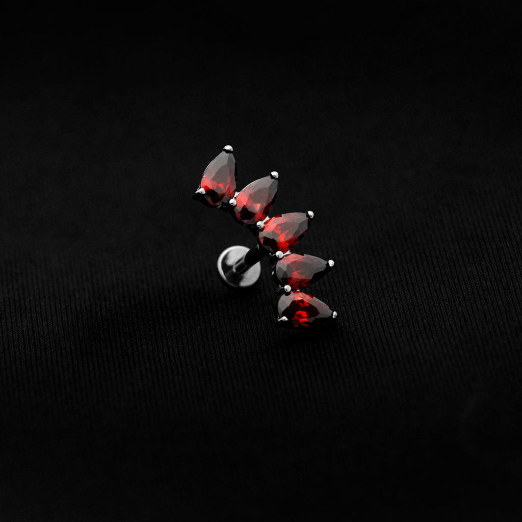 ASTM F136 Implant Grade Titanium 5 Teardrop Red Flatback Labret Stud