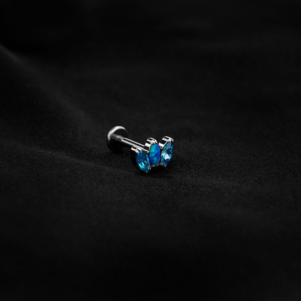 ASTM F136 Implant Grade Titanium 3 Marquise Blue Opal AQ Flatback Labret Stud