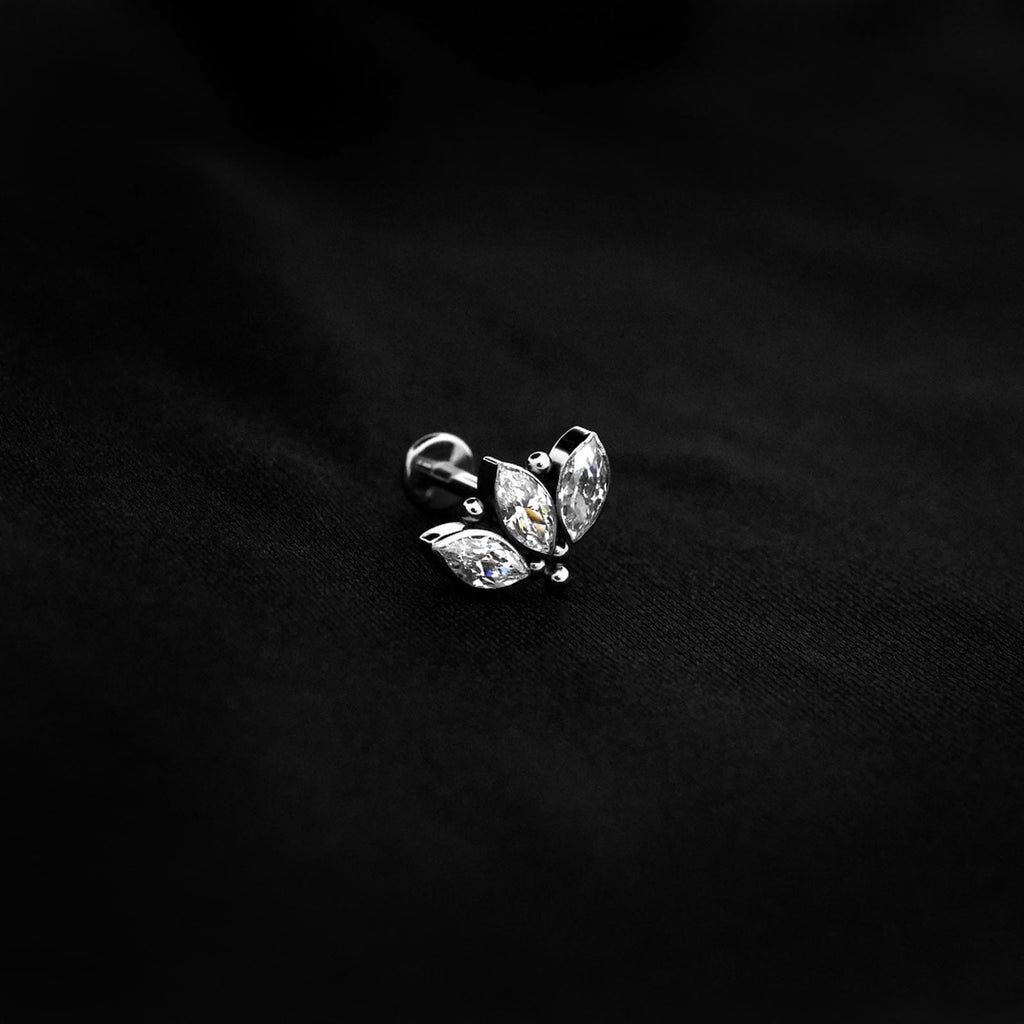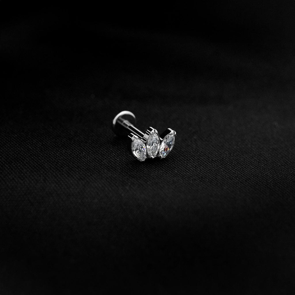 ASTM F136 Implant Grade Titanium 3 Leaf Marquise AB Flatback Labret Stud