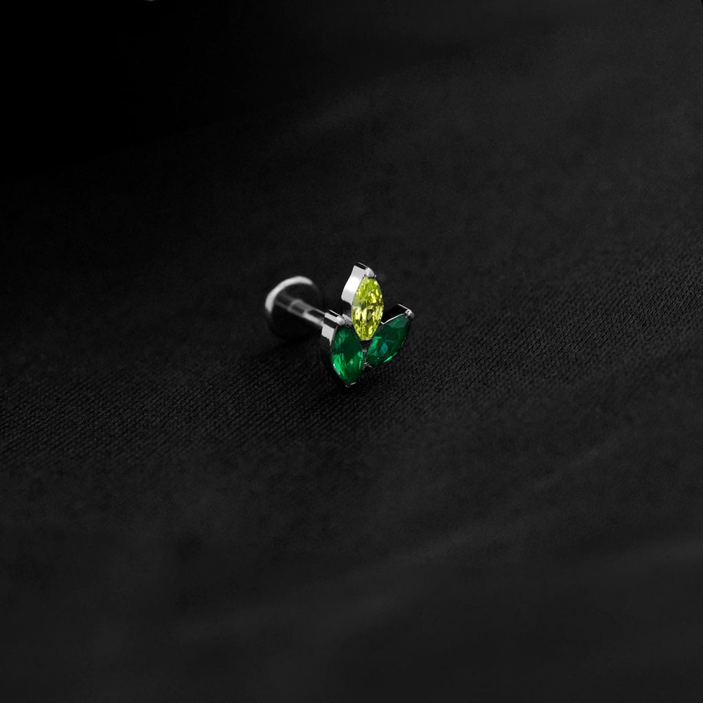 ASTM F136 Implant Grade Titanium 3 Marquise Leaf Flatback Labret Stud