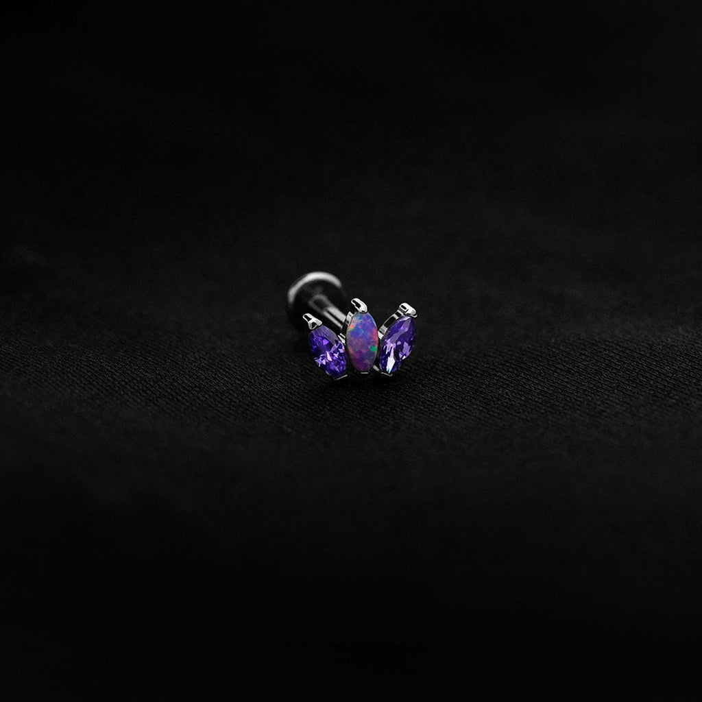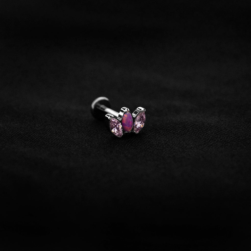 ASTM F136 Implant Grade Titanium 3 Marquise Opal Purple Purple Flatback Labret Stud