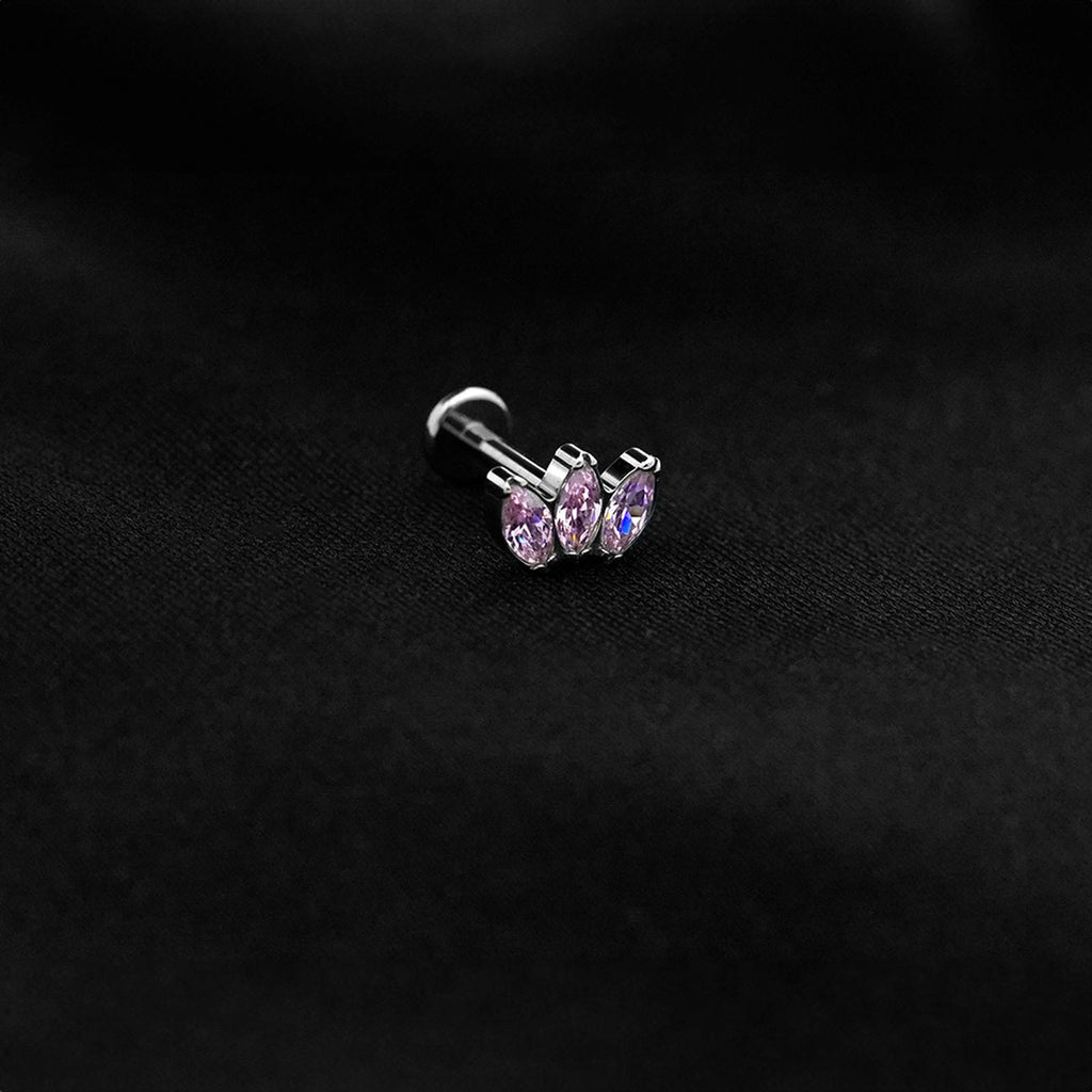 ASTM F136 Implant Grade Titanium 3 Marquise Pink Flatback Labret Stud