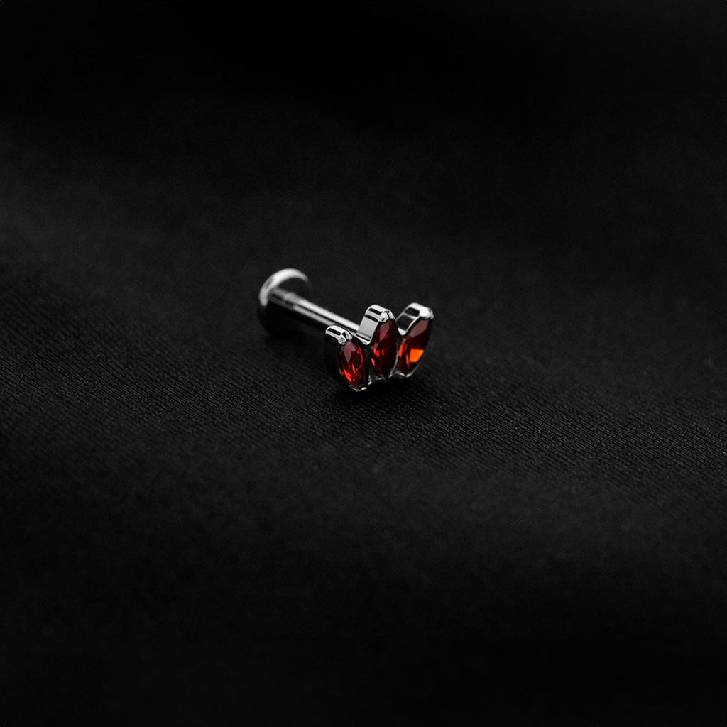 ASTM F136 Implant Grade Titanium 3 Marquise Red Flatback Labret Stud