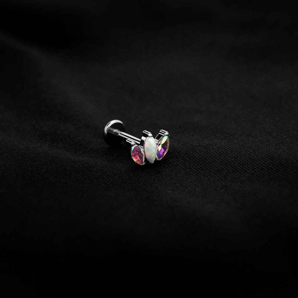 ASTM F136 Implant Grade Titanium 3 Marquise Opal White CZ Flatback Labret Stud