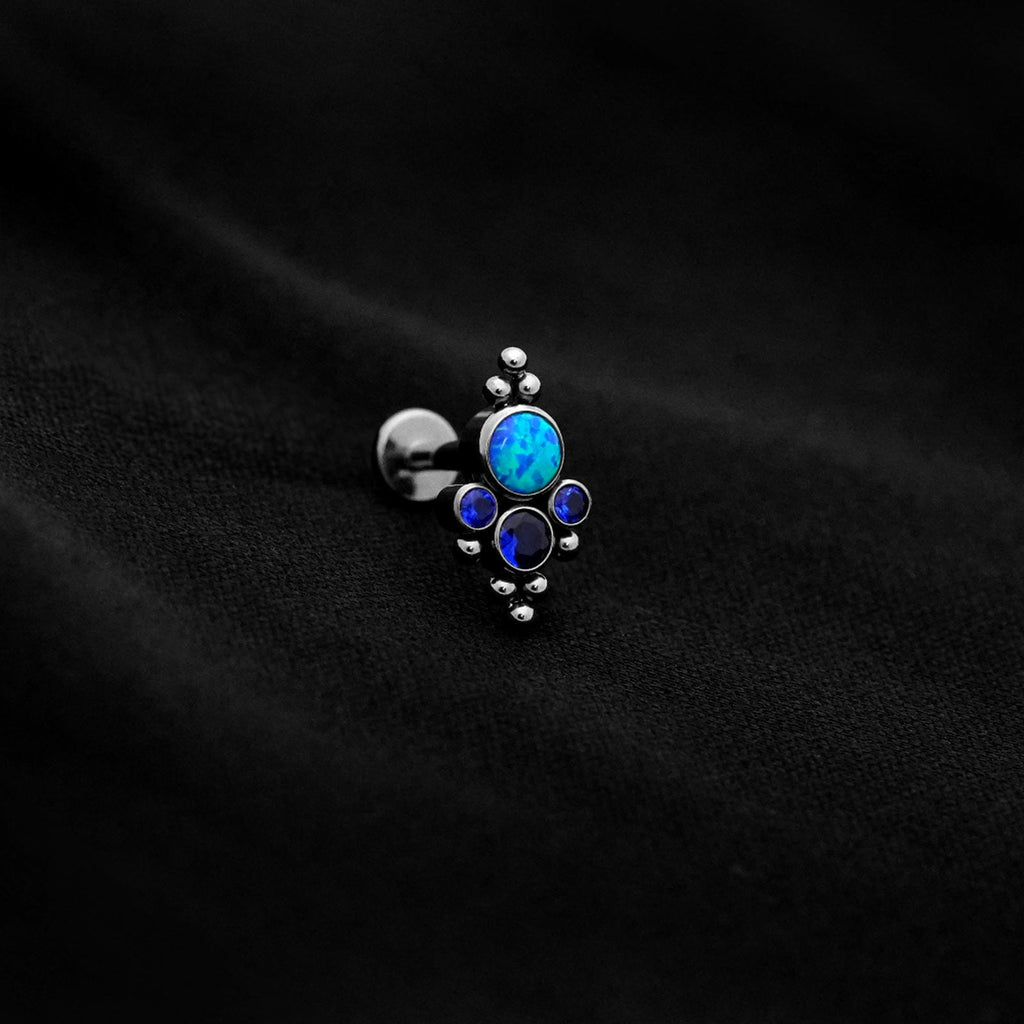 ASTM F136 Implant Grade Titanium 4 Bez Blue Opal BZ Cluster Flatback Labret Stud