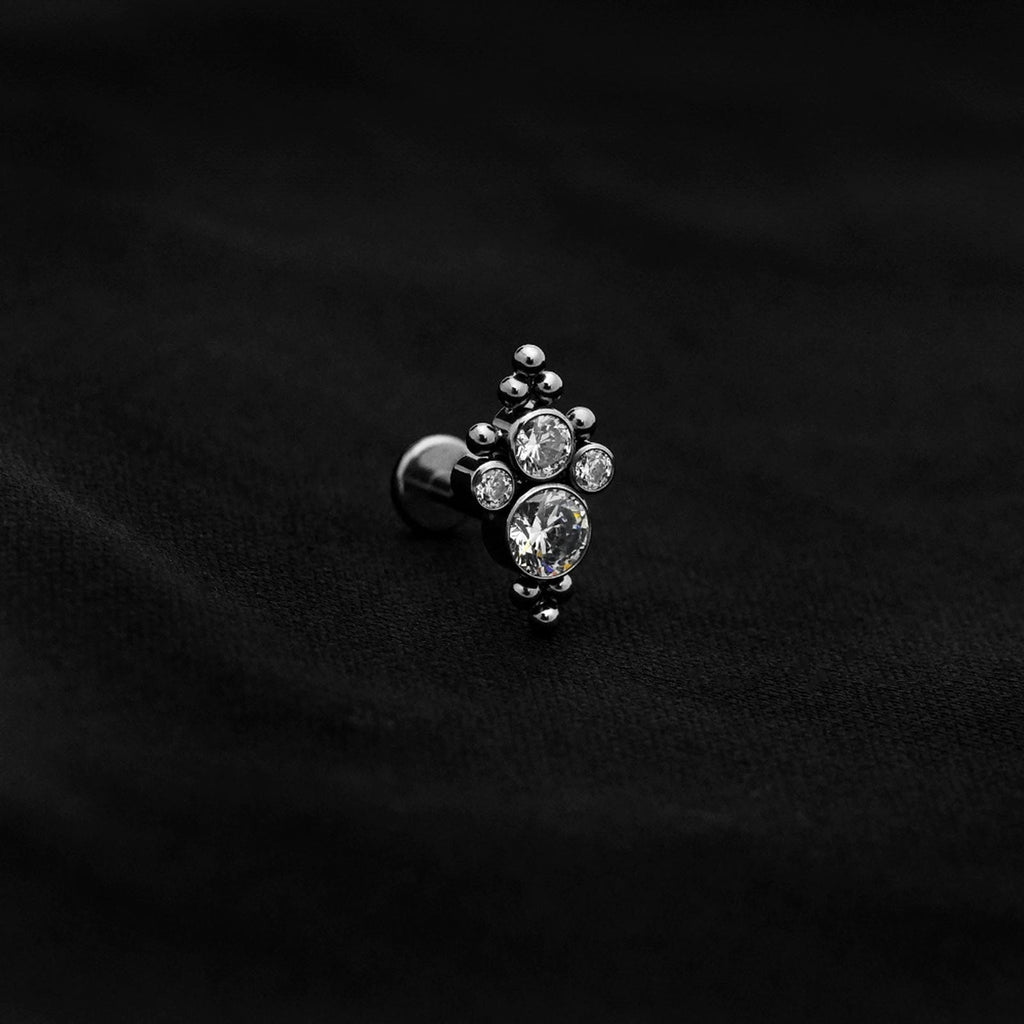 ASTM F136 Implant Grade Titanium 4 Bez CZ Cluster Flatback Labret Stud