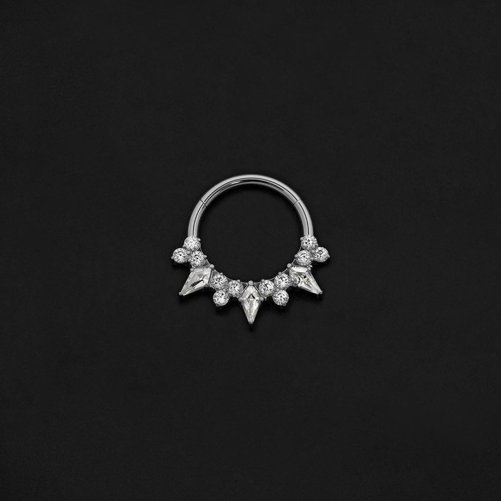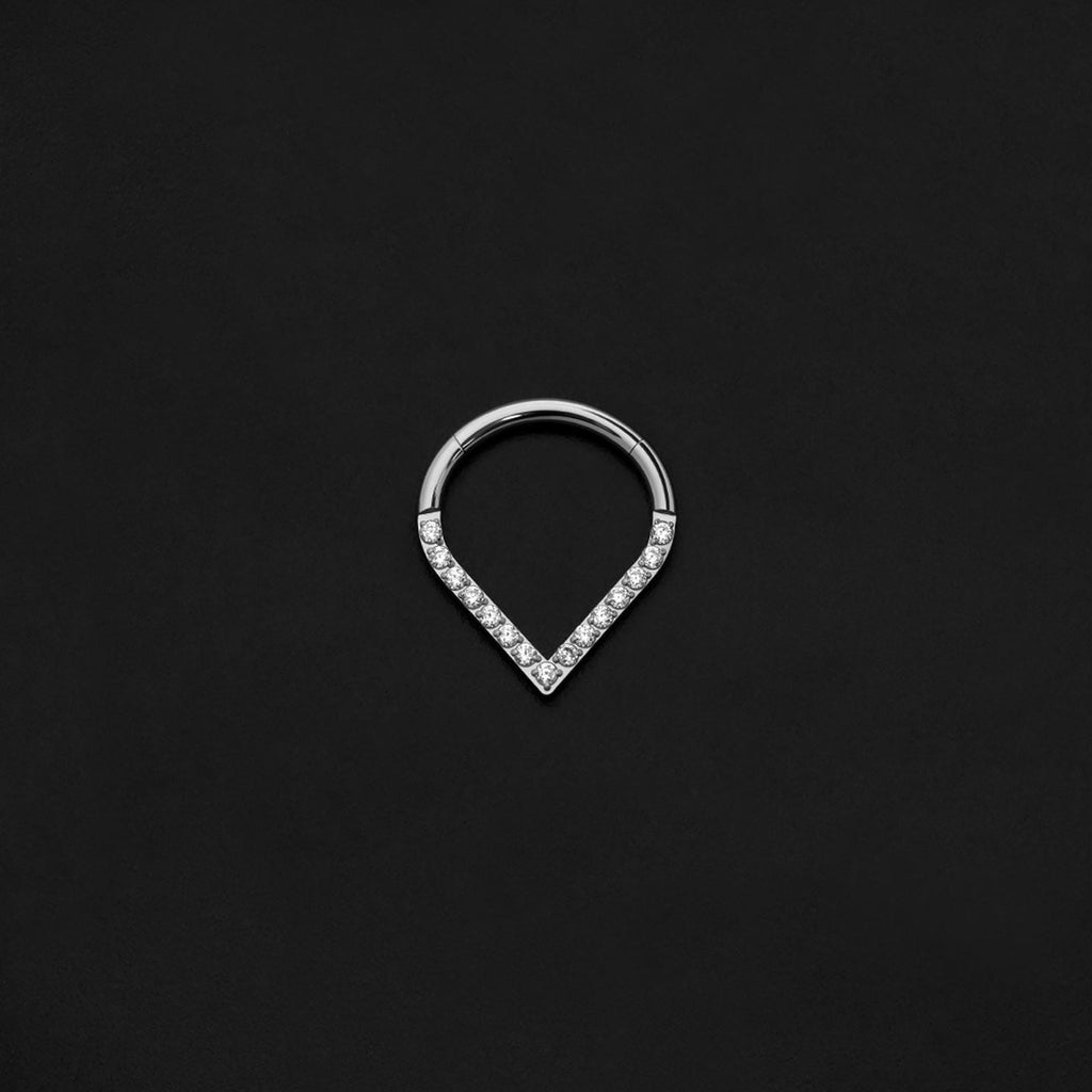 ASTM F136 Implant Grade Titanium Heart Shevron Paved CZ Hinged Ring Clicker