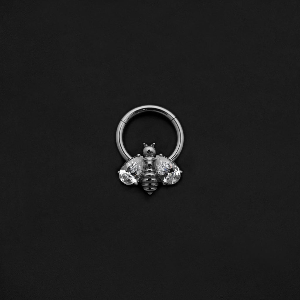 ASTM F136 Implant Grade Titanium Bee CZ Hinged Ring Clicker